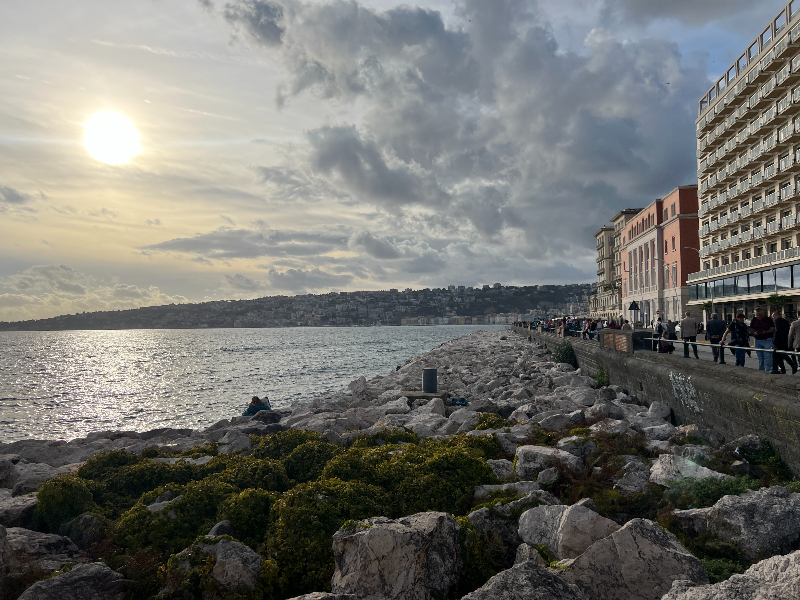 플레비시토 광장을 지나쳐서 길 따라 내려가다 보면, 멀리 바다가 보입니다. 이탈리아 3대 항구 도시 중 한 곳인 나폴리인데, 생각보다 화려한 느낌은 없습니다. 뻥 뚫린 시야와 바다 풍경이 너무 좋았습니다.
