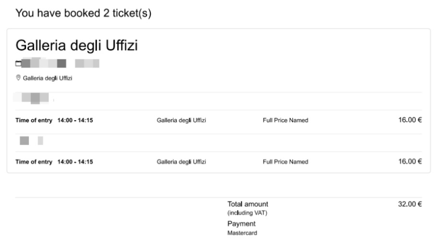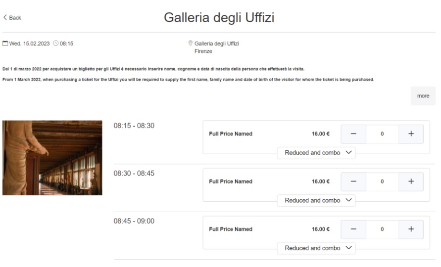 우피치 미술관 역시 온라인으로 사전 예매가 가능합니다! 관람 시간까지 미리 선택하여 예매하다 보니, 여행 일정 세울 때 참고 바랍니다!