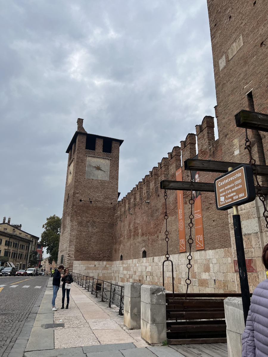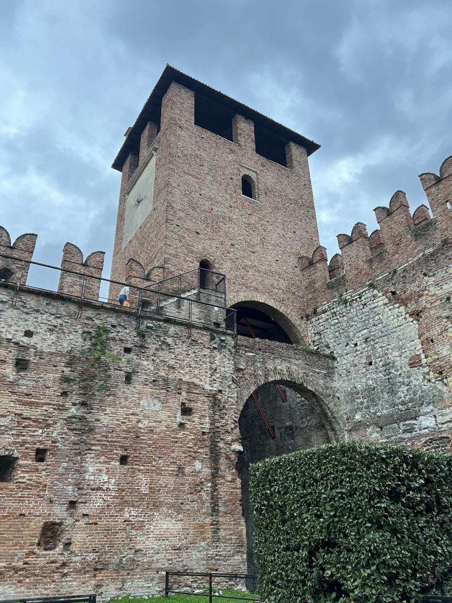 카스텔베키오 다리의 입구는 다리 위를 건너가는 느낌이 들지 않았습니다. 그러다 아치 위를 올라가 보면 아디제강과 베로나의 경치를 볼 수 있었습니다!