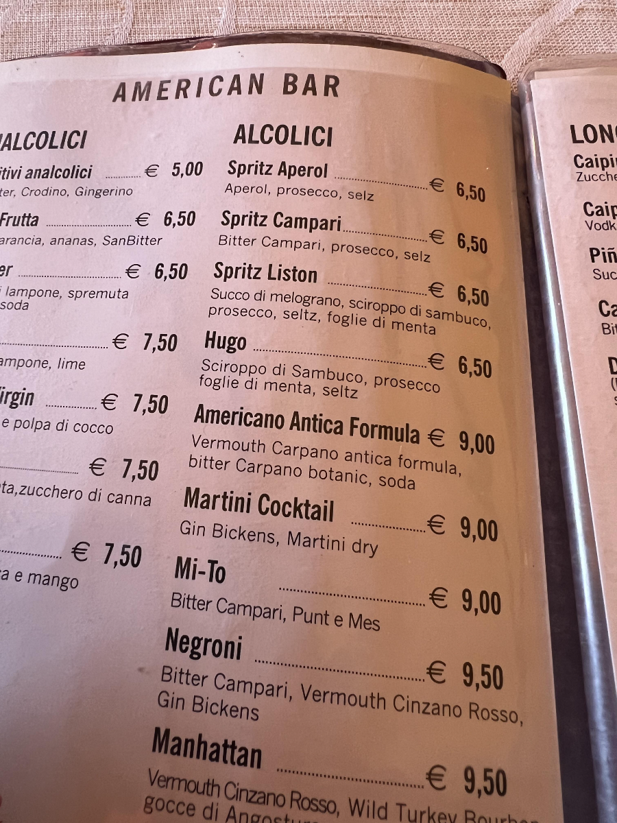 잠시 비를 피해 들어왔기 때문에 아페롤 스프릿츠 한 잔씩 했습니다. 하지만 소나기가 생각보다 오래 내려 두 잔씩 마셨습니다.